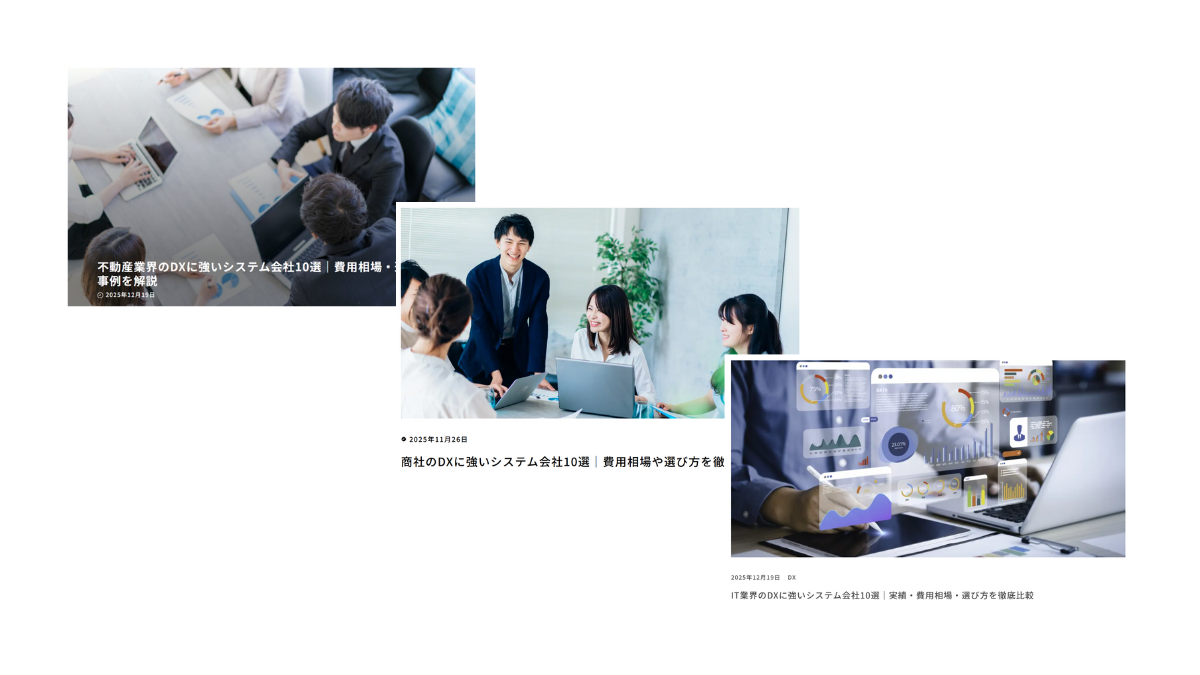 今回の記事では、それぞれ不動産・IT・商社のDXに強いシステム会社としてご紹介いただいています。